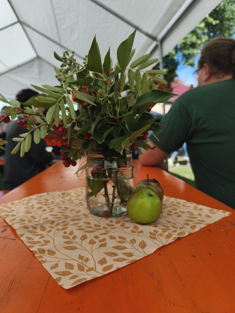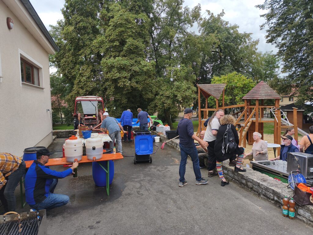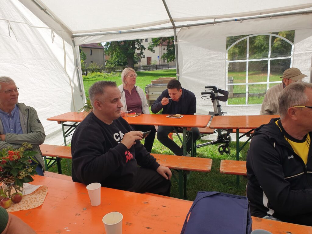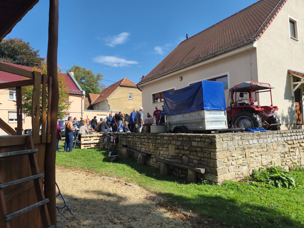 Vippachedelhausen hat heute sein großes Fest gehabt und es war wunderschön. Herzlichen Dank an alle, die für das wunderbare Gelingen beitrugen, der unermüdlichen Mannschaft beim Auf- und Abbau, dem Team an der Apfelpresse, den Frauenzimmern der Spinde für den leckeren Kuchen und für den Einsatz am Kuchenbuffet, den fleißigen Geistern am Rost und bei der Getränkeversorgung, Marlies aus Berlstedt für ihre guten Worte zum Erntedank, den 12-Zylindern für die stimmungsvolle und stimmkräftige musikalische Untermalung und eigentlich allen Gästen für die gute Laune.