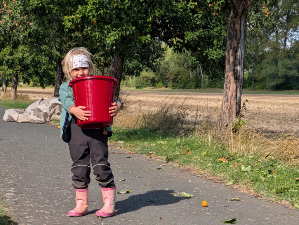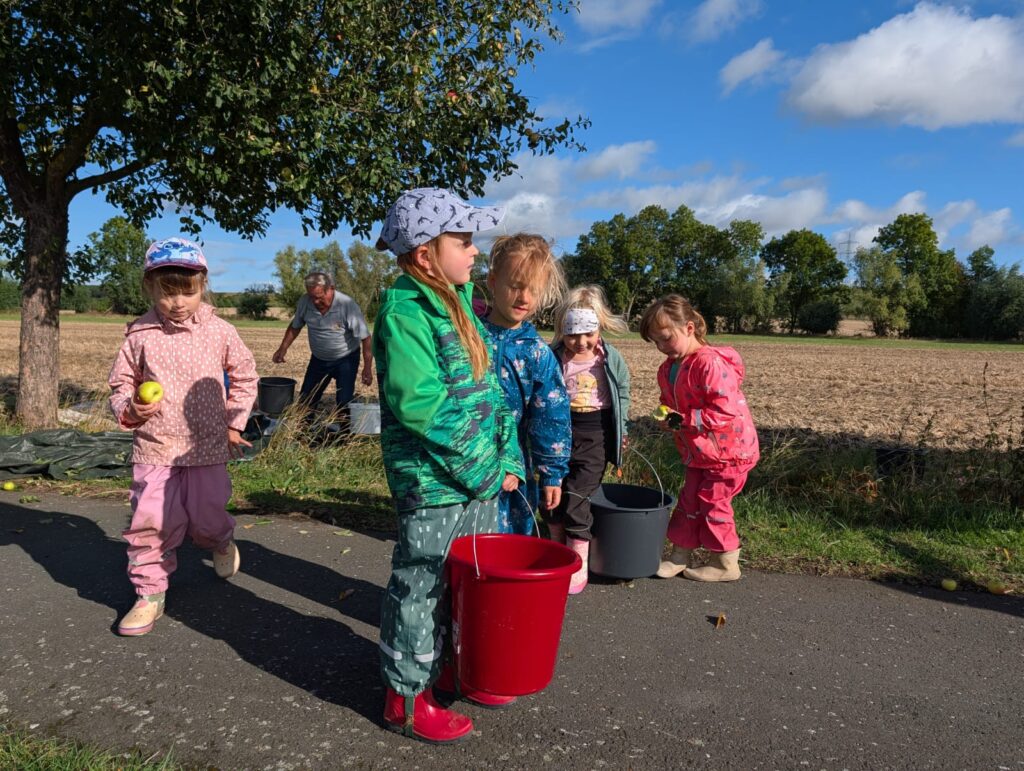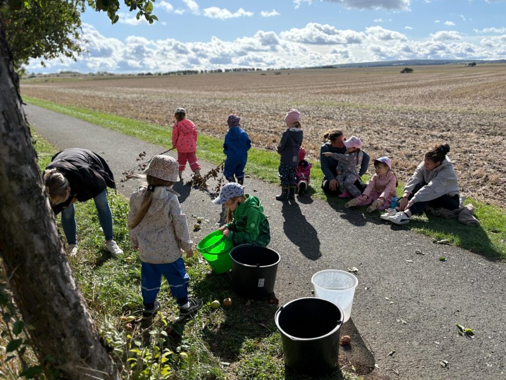 Äpfelsammeln mit den Palmbergknirpsen und dem Heimatverein